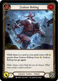 While there is a card in your pitch zone with [Power] greater than Zealous Belting's base [Power], Zealous Belting has go again .